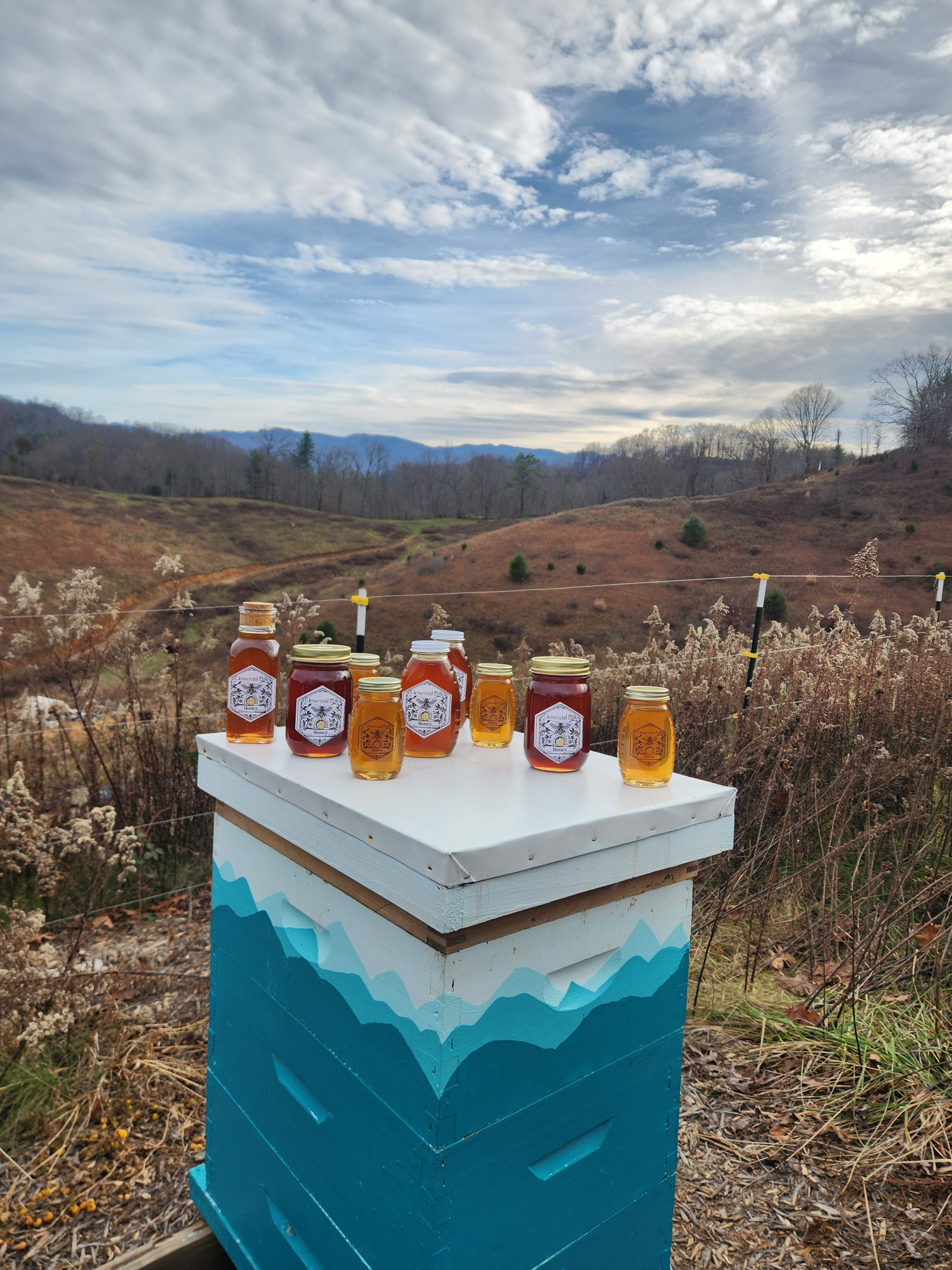 We currently have 8 oz, 16 oz, and 22 oz sized jars of honey available. There is a spring blend (Tulip poplar flow), early summer blend (Blackberry flow), and a late summer blend (Wildflower & summer tree flows), while supplies last!